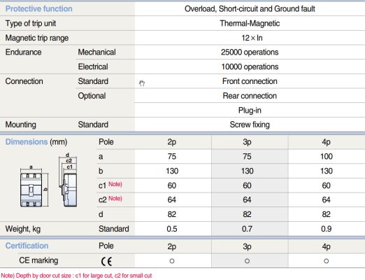 - Chức năng: Bảo vệ chống dòng rò, bảo vệ ngắn mạch, bảo vệ quá tải
