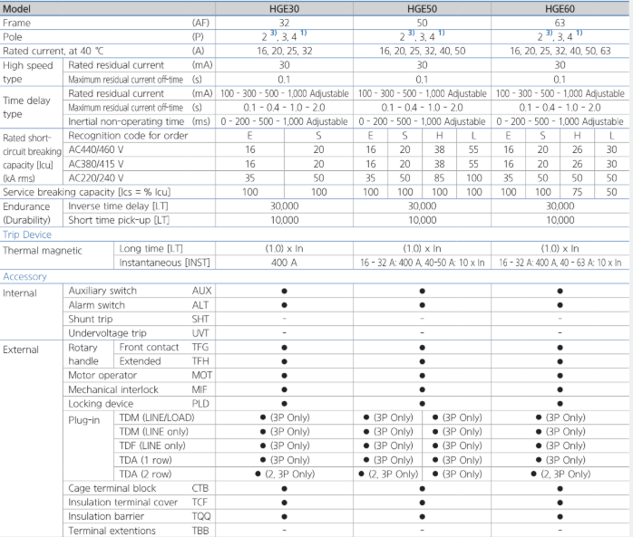 Aptomat ELCB HGE50E 3P 32A 16kA Hyundai