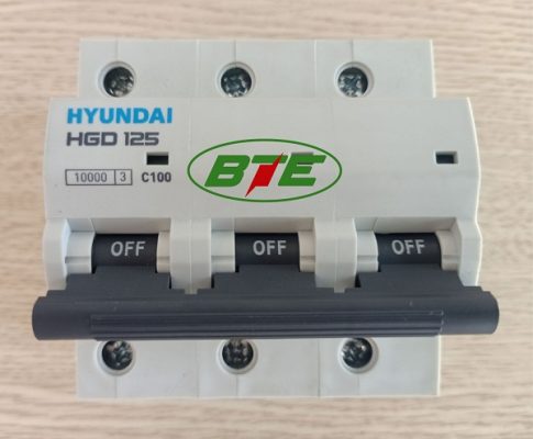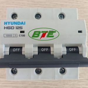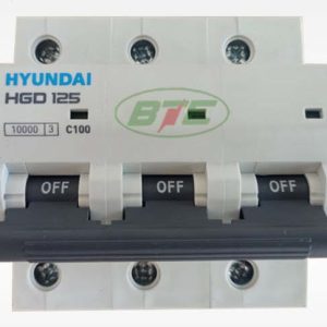 Aptomat MCB HGD125 3P 100A 10kA Hyundai là thiết bị đóng cắt dạng cài thanh ray, 3 pha, khung 125AF, có dòng định mức cao 100A, dòng ngắn mạch cao 10kA, có chức năng đóng cắt điện, bảo vệ các phụ tải phía sau aptomat như bảo vệ quá tải, ngắn mạch (Nhiệt & từ).