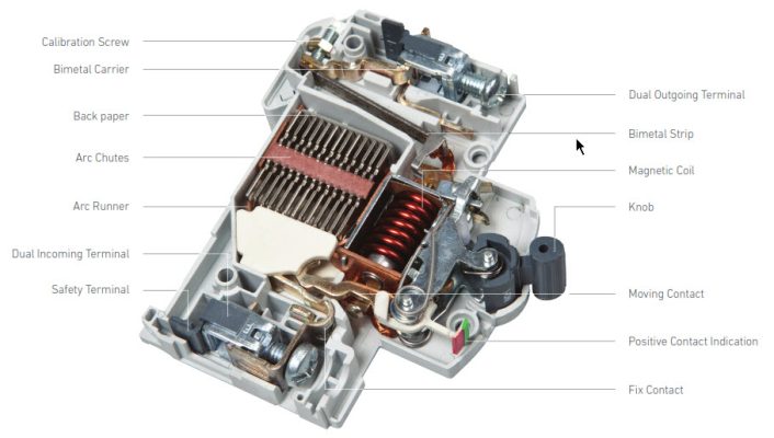 Aptomat HGD125 3P 100A 10kA được lắp đặt trong các tủ điện nhựa hay tủ sắt trong các tòa nhà, nhà máy, trên tàu thủy,…. Cấu tạo bên trong của Aptomat cài seri HGD hãng Hyundai: