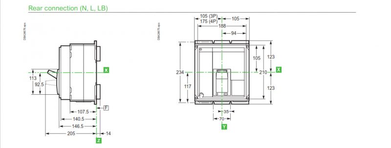 Kích thước của Aptomat MCCB 3P 1000A 70kA Compact NS1000H