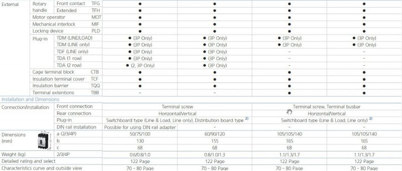 Bảng giá, catalog của MCCB HGM250S-F Hyundai