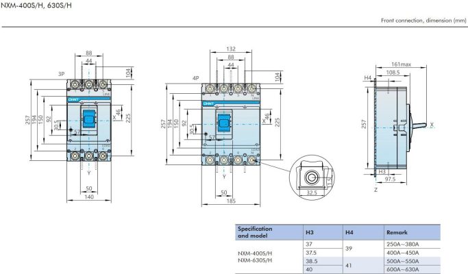 Kích thước của MCCB NXM-400S/H, 630S/H Chint