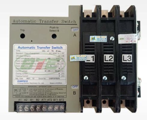 ATS 3P 100A OSS-61-TN Osung là thiết bị chính trong tủ điện ATS, có chức năng tự động chuyển nguồn từ nguồn chính sang nguồn dự phòng khi nguồn chính gặp sự cố hay mất điện.