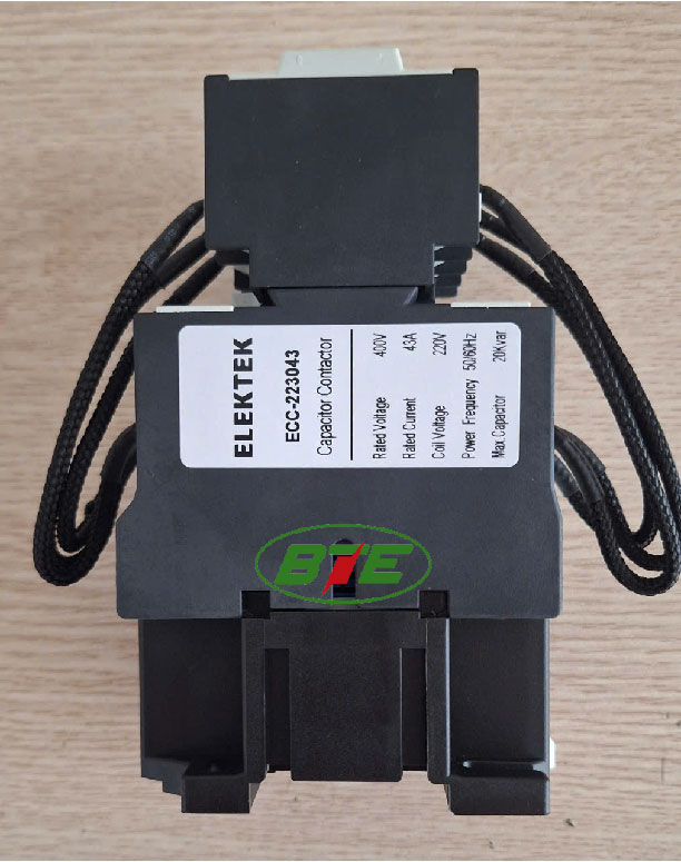 Contactor tụ bù 43A coil 220V – ECC-223043 Elektek là contactor chuyên dụng đóng cắt tụ bù, được sử dụng rộng rãi trong tủ tụ bù công suất phản kháng, kết hợp cùng át, bộ điều khiển tụ bù tự động đóng cắt tụ bù đáp ứng hệ số cos phi cài đặt.