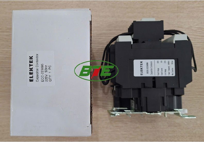 Contactor tụ bù 95A coil 220V – ECC-223095 Elektek là contactor chuyên dụng đóng cắt tụ bù, được sử dụng rộng rãi trong tủ tụ bù công suất phản kháng, kết hợp cùng át, bộ điều khiển tụ bù tự động đóng cắt tụ bù đáp ứng hệ số cos phi cài đặt.