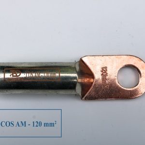 - Đầu cos đồng nhôm: Mã hiệu Cos AM120, kích thước (dxr): 98x28mm(±2mm), dùng cho dây nhôm tiết diện 120mm2, đầu bắt tiếp xúc cực đồng, lỗ bắt bu lông: 14mm