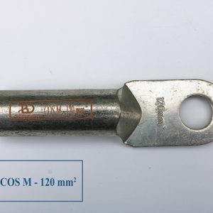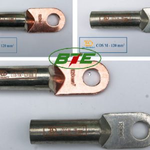 - Đầu cos đồng: Mã hiệu Cos M120, kích thước (dxr): 98x28mm(±2mm), dùng cho dây đồng tiết diện 120mm2, lỗ bắt bu lông: 14mm