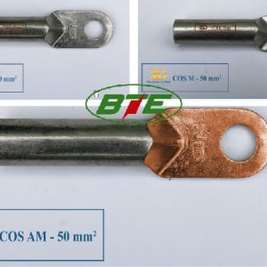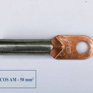 - Đầu cos đồng nhôm: Mã hiệu Cos AM50, kích thước (dxr): 77x20mm(±2mm), dùng cho dây nhôm tiết diện 50mm2, đầu bắt tiếp xúc cực đồng, lỗ bắt bu lông: 10mm