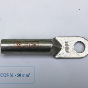 - Đầu cos đồng: Mã hiệu Cos M50, kích thước (dxr): 77x20mm(±2mm), dùng cho dây đồng tiết diện 50mm2, lỗ bắt bu lông: 10mm