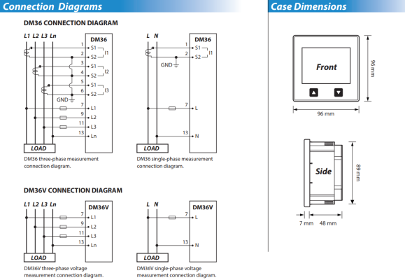 - Đo và hiển thị điện áp pha (L-N) và điện áp dây (L-L).