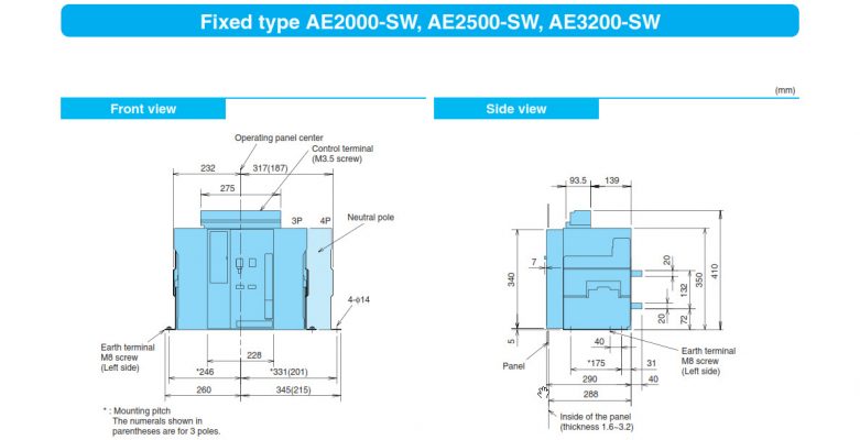 Kích thước và sơ đồ của ACB AE2000-SW