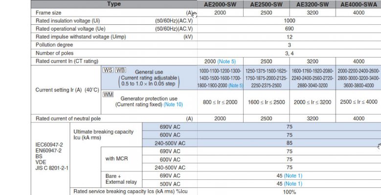 Thông số cơ bản của ACB AE2000-SW