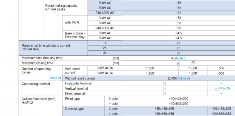 Bảng giá và catalog của Máy cắt ACB Mitsubishi
