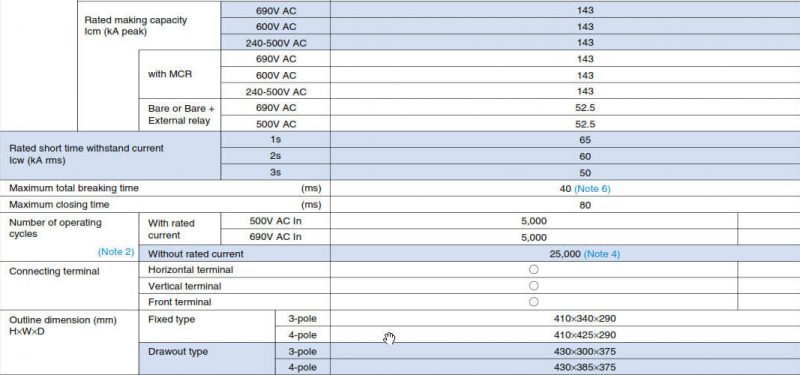 Bảng giá và catalog của Máy cắt ACB Mitsubishi