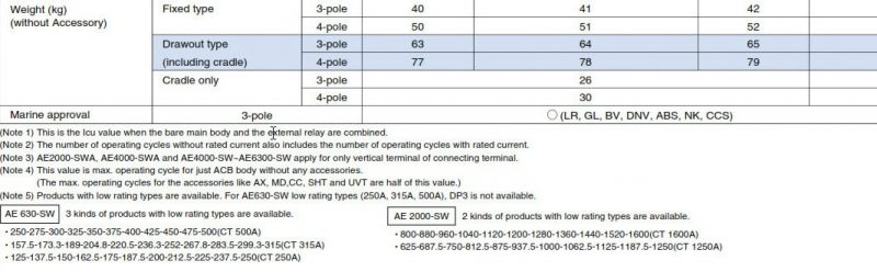 Thông số cơ bản của ACB AE630-SW