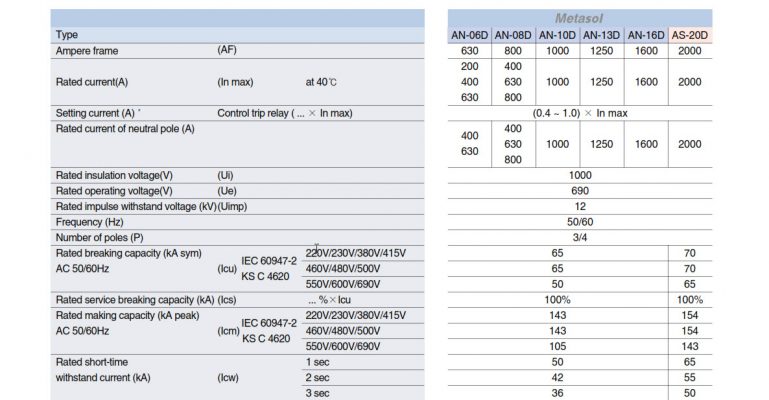 - Têu chuẩn IEC 60947-2 / KS C4620.