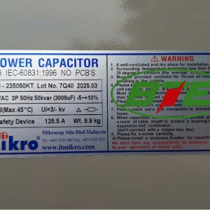 Thông số kĩ thuật của Tụ bù dầu 3 pha 230V 50kVAR Mikro – MMB-235050KT