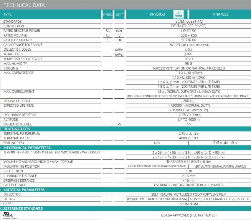 | Tiêu chuẩn chất lượng: | IEC/EN 60831-1/2; UL 810; khả năng chịu dòng chập 10.000 AFC |