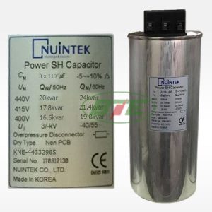 Tụ bù khô 3 pha 440V 20kvar Nuintek, mã KNE-4433296S là sản phẩm nhập khẩu Hàn Quốc, với ưu điểm thiết kế nhỏ gọn, thân thiện môi trường hơn tụ dầu, được sử dụng nhiều trong các tủ bù ở các nhà máy, trạm điện,….
