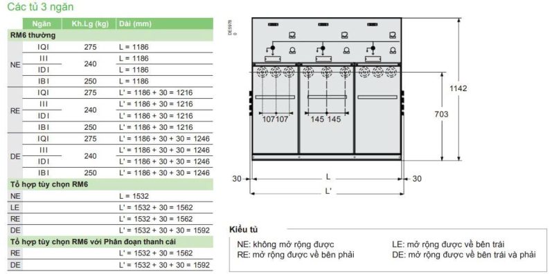 - Tủ trung thế RMU: Dòng RM6, cách điện bằng khí SF6