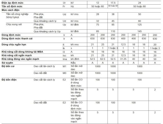 Thông số kỹ thuật ngăn cầu dao phụ tải (I):