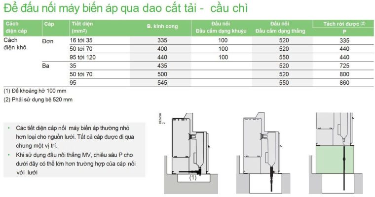 Kết nối với máy biến áp thông qua dao máy cắt: